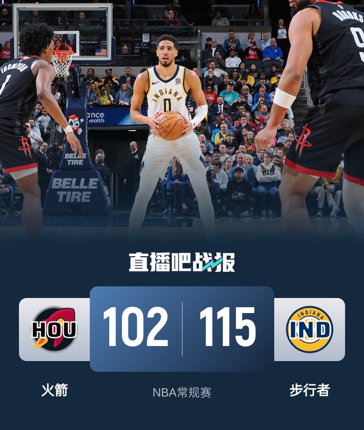 哈利伯顿28+15 西卡18分 申京25+9+7 步行者送火箭3连败