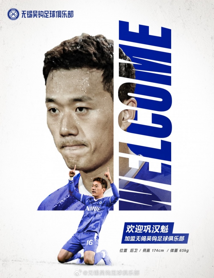 我们在此郑重宣布,经双方协商一致,球员巩汉魁加盟无锡吴钩足球俱乐部。2025赛季,他将为无锡而战!